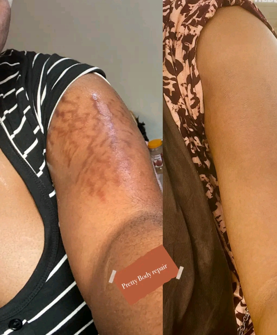 I started noticing this stretch marks 3 years ago. In fact, it spread all across my arm. This year, a friend told me to get this product and use. After using it for 2 weeks, all the stretch marks disappeared. Vivian (Port Harcourt)